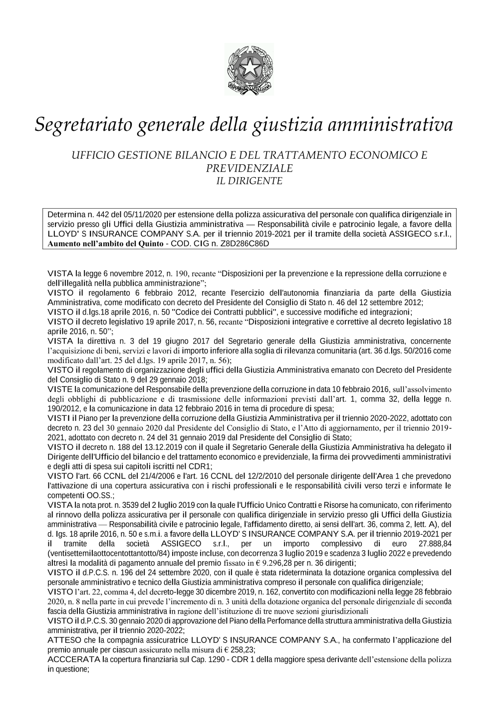Segretario Generale della G.A.Segretario delegato per il C.d.S.